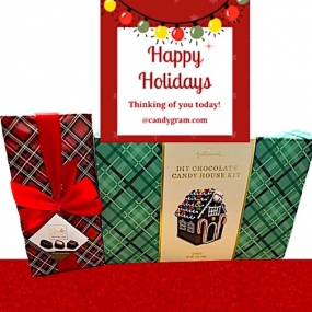 You are sending this wonderful Do it Yourself Chocolate Candy House Kit. Plus we have our Belgium Chocolates Holiday wrapped! A nice Gift Set!